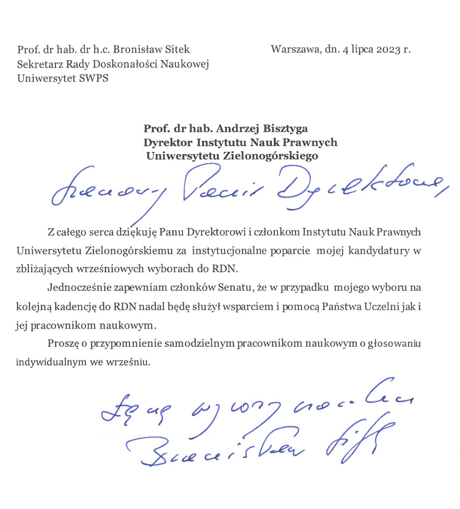 z dnia 3.06.2020 r. w sprawie wskazania kandydata na Rektora Uniwersytetu Zielonogórskiego