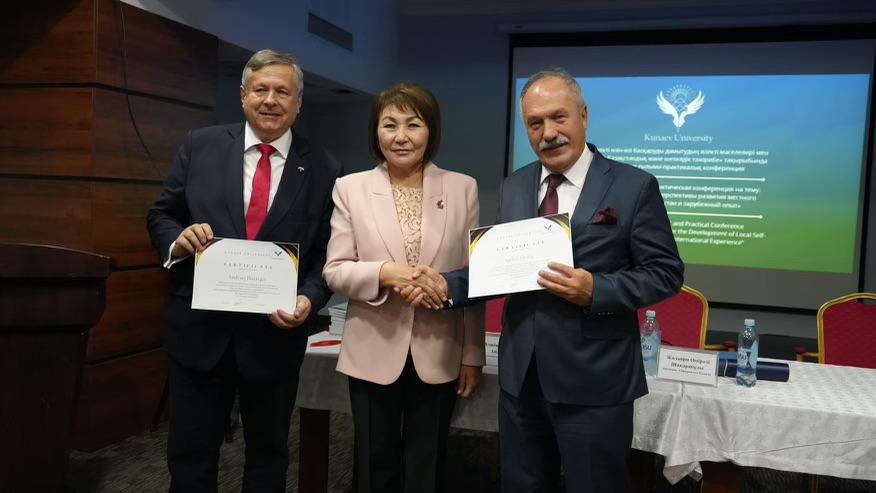 Przemawia Rektor Uniwersytetu Zielonogórskiego - prof. dr hab. Wojciech Strzyżewski, obok stoi Prezydent Miasta Zielona Góra - Janusz Kubicki; fot. J. Czarnecka